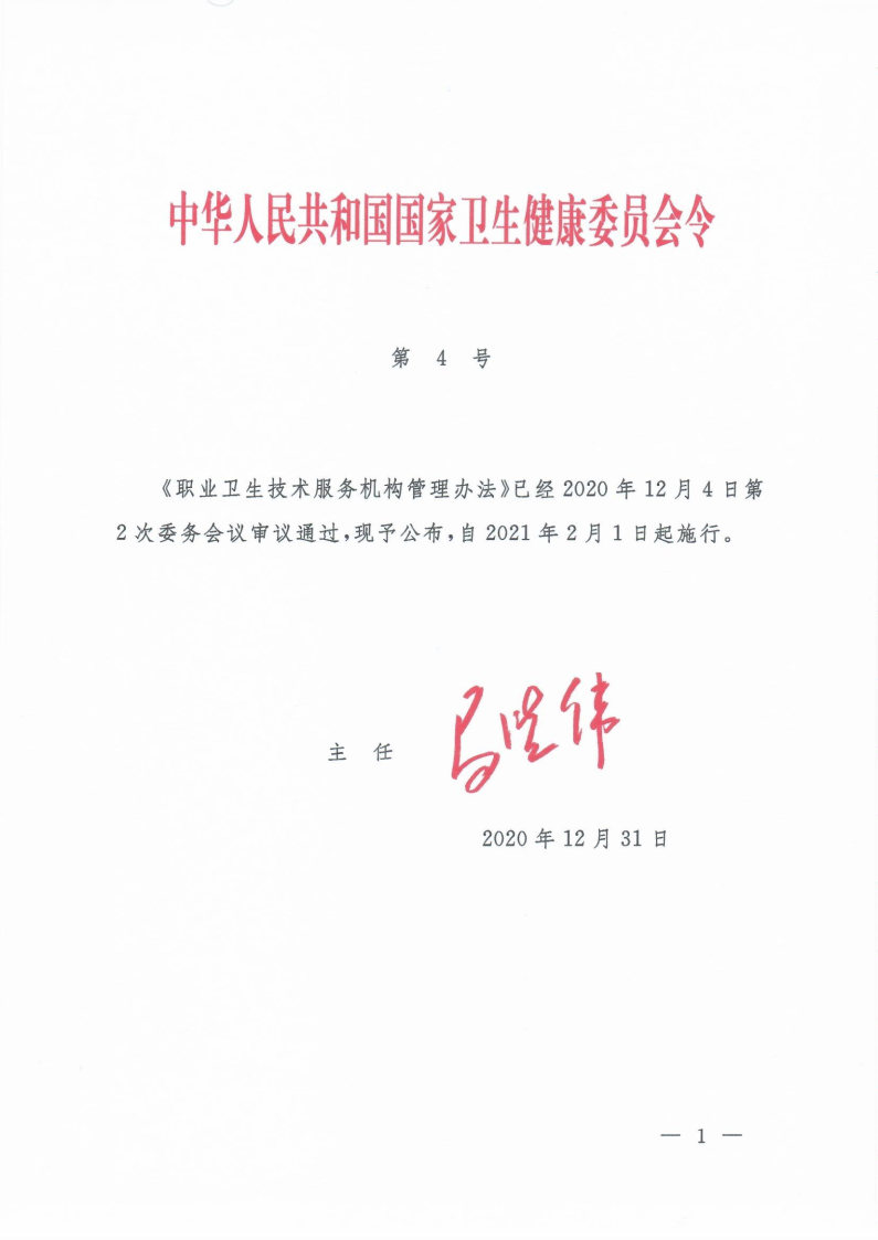 職業(yè)衛(wèi)生技術(shù)服務(wù)機(jī)構(gòu)管理辦法(國(guó)家衛(wèi)生健康委令第4號(hào))